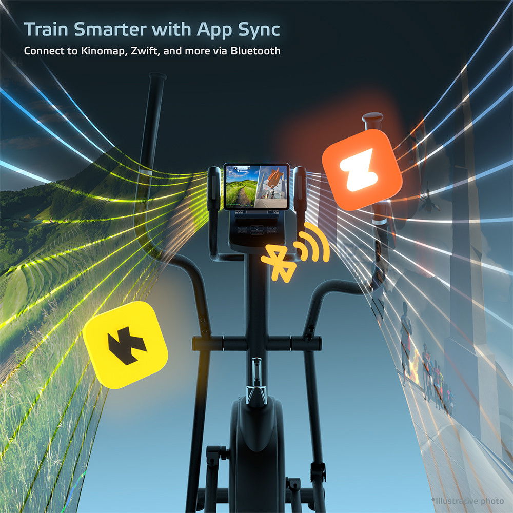 ZenStride 200 har hållare för surfplatta och vattenflaska, tydlig display med all statistik, tyst magnetiskt motstånd och transporthjul för enkel förflyttning. Den är designad för att göra hemmaträning både enkel och rolig.