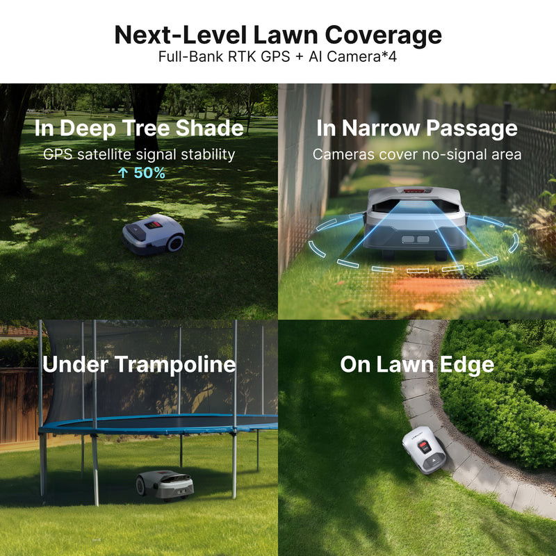 Anthbots egenutvecklade fullbands-RTK tar emot signaler från upp till 155 satelliter, vilket ger en stabil positionering även där andra robotar tappar kontakten. Genie 3000 fortsätter klippa exakt även nära husväggar, under träd och i skuggiga partier.